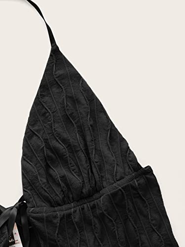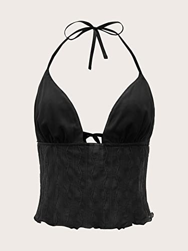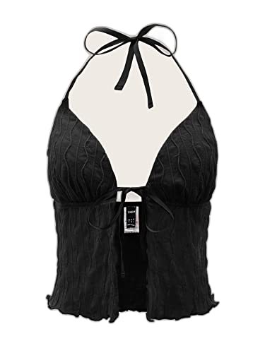 SHEIN - شي ان بلوزة بحمالات رفيعة بدون ظهر باربطة امامية مزينة بالخس من ايكون