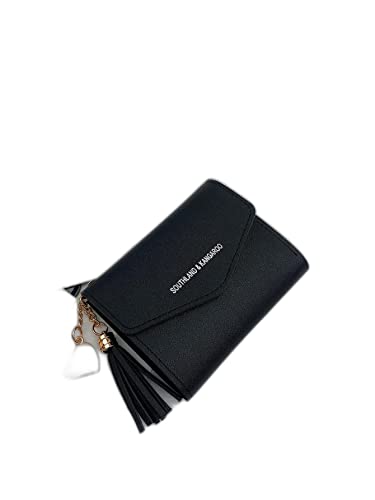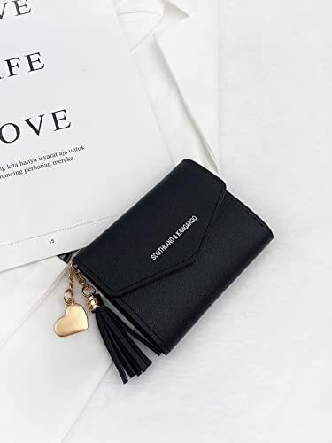 SHEIN - شي ان محفظة صغيرة مزينة بشراشيب وحروف جرافيك بلون اسود، جلد صناعي