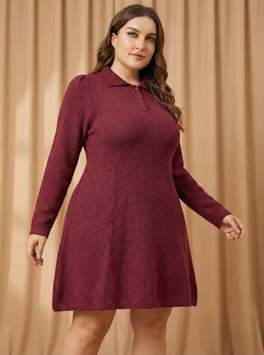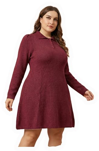 عام - فستان سويتر منسوج باكمام طويلة للنساء من شي ان - فستان شتوي ناعم دافئ بقصة ايه لاين مقاس 2XL