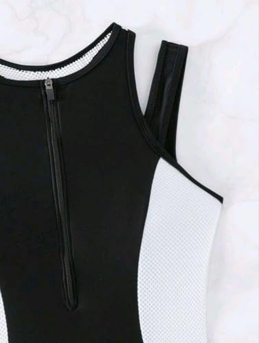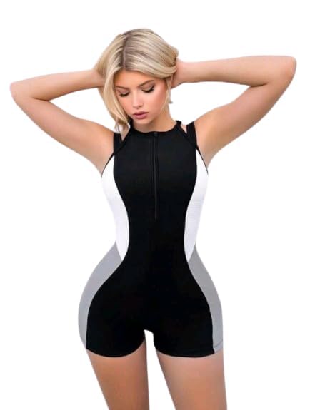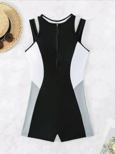 Generic - مايوه سباحة قطعة واحدة صيفي للشاطئ بسوستة أمامية وألوان متباينة من شي ان