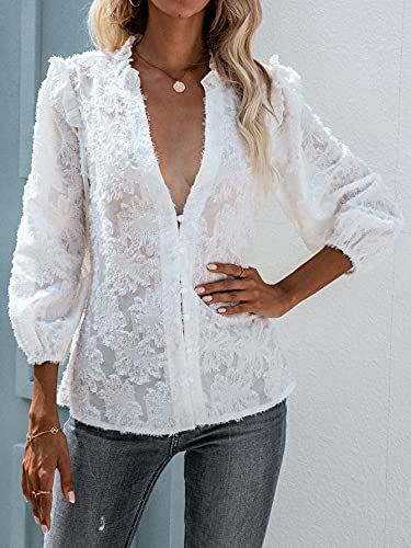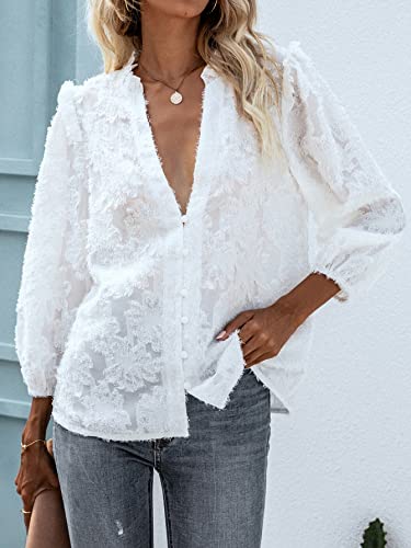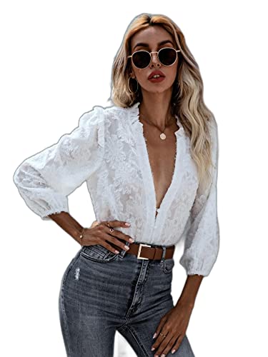 SHEIN - شي ان بلوزة باكمام بيشوب برقبة مشقوقة من يونيتي