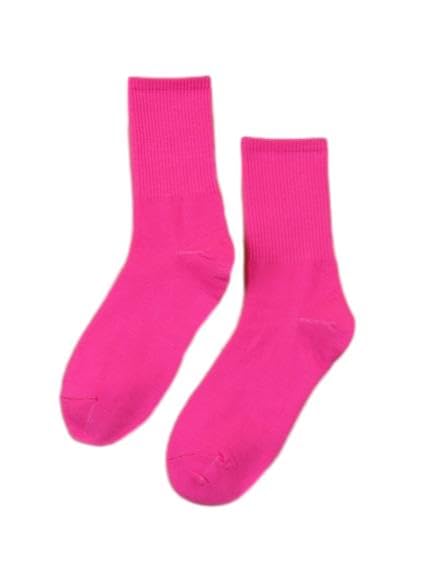 SheIn - شراب قطن سادة برقبة دائرية ضيقة عند الساق بتصميم مبطن مناسب لرياضة الجري للنساء من شي ان, هوت بينك, One Size