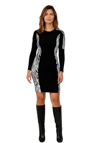 Generic - فستان ضيق باكمام طويلة للنساء من شي ان، اسود مع لوحة طباعة حمار وحشي ورقبة دائرية، ملابس كاجوال للحفلات المسائية