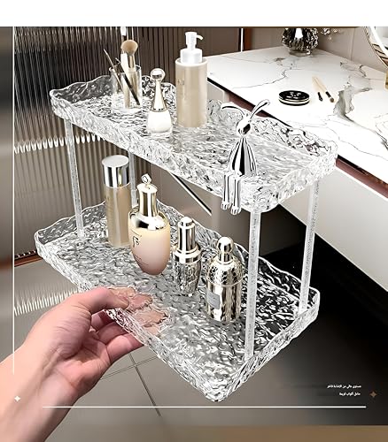 Generic - حامل اكريليك ذو 2 طبقة لتنظيم الرفوف مع دعامات من الفولاذ المقاوم للصدأ لأساسيات الحمام ومنتجات التجميل