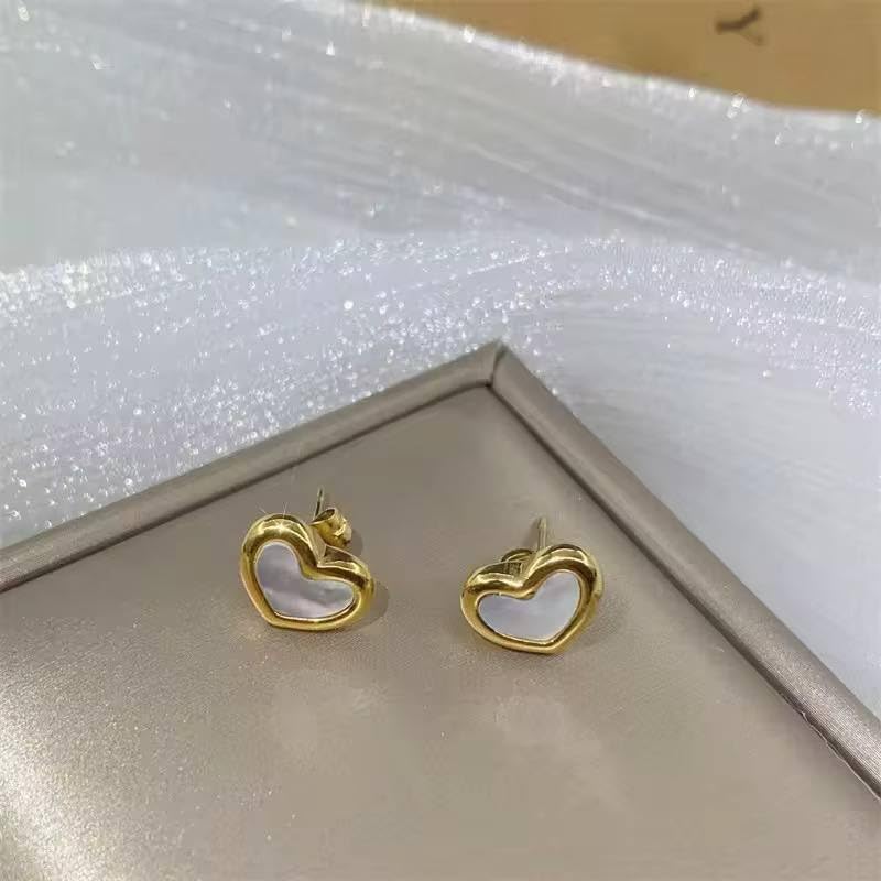 Generic - حلقان على شكل قلب وشكل صدفة بطلاء ذهبي من الفولاذ المقاوم للصدأ 316L، حلقان بدلاية هندسية مناسبة كهدية للنساء