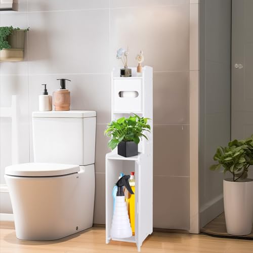 ShellKingdom - حامل ورق التواليت، دولاب تخزين صغيرة للحمام مع أبواب وأرفف، خزانة تخزين رفيعة للحمام ذات المساحات الصغيرة، رف منظم للزوايا، علب تخزين ورق التواليت من شيل كينجدوم