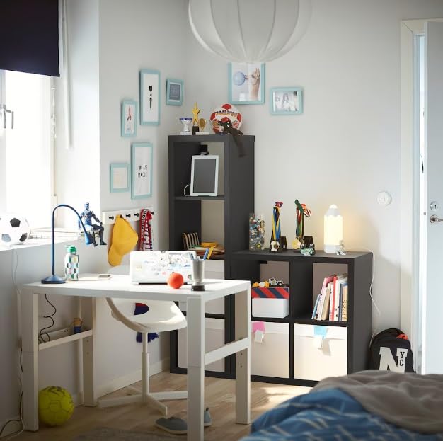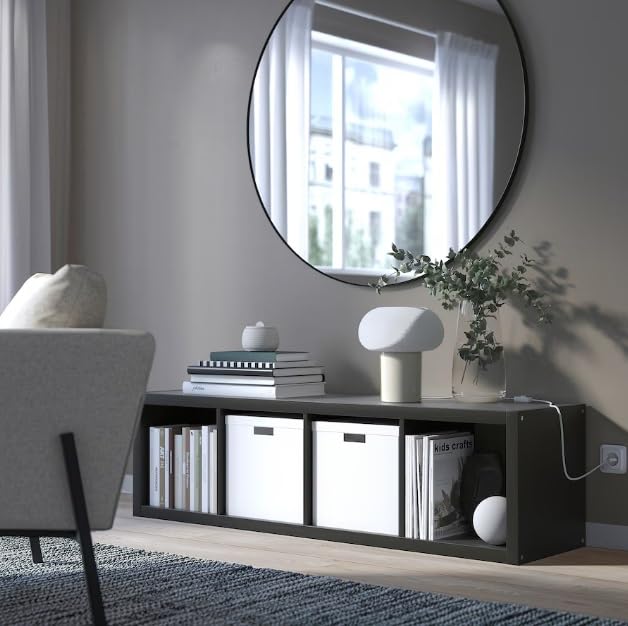 - أضفي طابعك الشخصي على وحدة الرفوف باستخدام الصناديق والتركيبات الداخلية، أو أضيفي قاعدة للحصول على مظهر مكتمل.