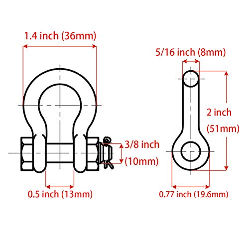 - قطر المشبك من فولاذ مقاوم للصدأ 316 - 5/16 بوصة؛ قطر الدبوس - 3/8 بوصة؛ العرض الداخلي للفتحة عند الدبوس - 0.5 بوصة؛