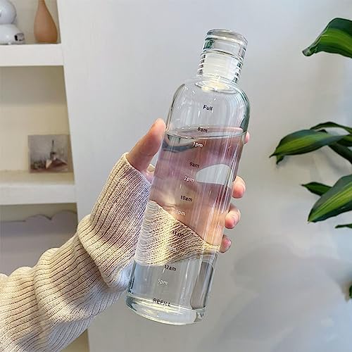 SHENGMEI - زجاجة مياه زجاجية شفافة من شينغمي، زجاجة مياه للشرب سميكة مقاومة للتسرب بسعة كبيرة ومطبوعة بمقياس زمني، تصلح لشرب الشاي من الزجاج عالية البورسليكات 500 مل.