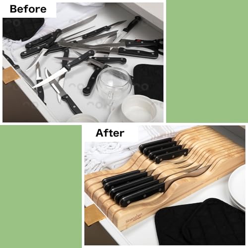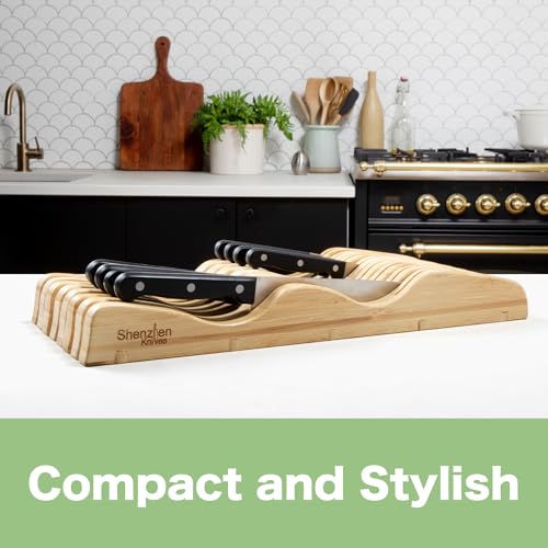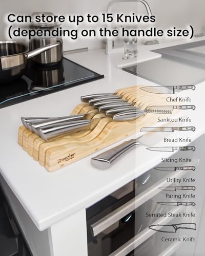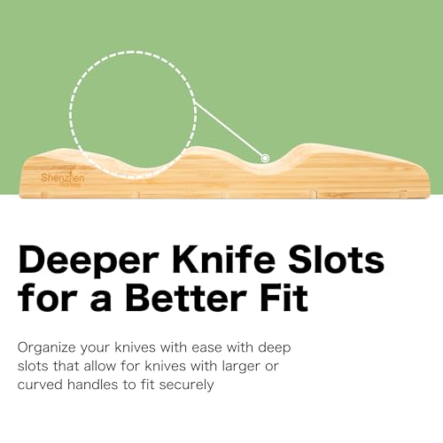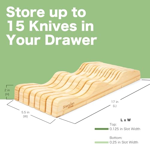 Shenzhen Knives - منظم سكاكين مصنوع من خشب الخيزران بتصميم 15 فتحة تحمل 12-15 سكينة كحامل سكاكين أو منظم أدوات لأدراج المطبخ من شينزين نايفز، مقاس L