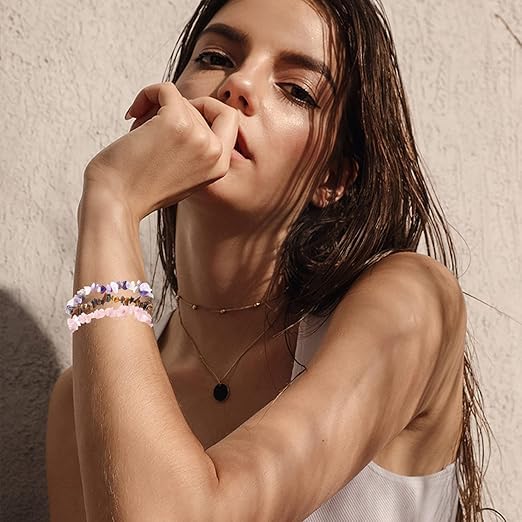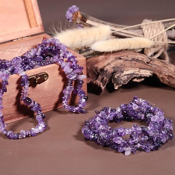 Generic - سوار من احجار كريمة شاكرا ريكي من شريف، سوار من احجار طبيعية قابلة للتمدد مصنوعة يدويا من رقائق الجمشت الارجوانية الاصلية للجنسين، مصنوع يدويا 4 مرات للارتداء اليومي، فكرة هدية فريدة من نوعها.