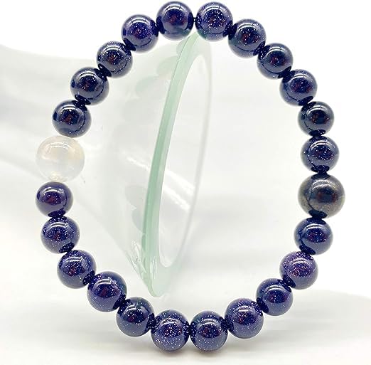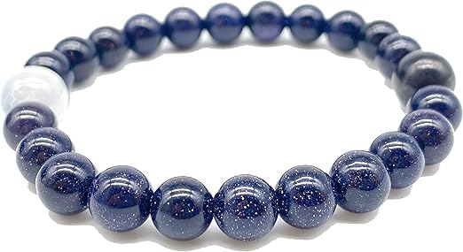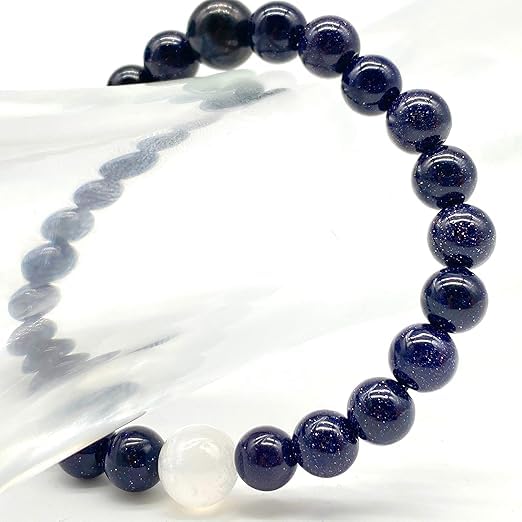 Generic - سوار من احجار شاكرا ريكي الطبيعية العلاجية من شريف، سوار مصنوع يدويا من حجر الشمس الازرق والكوارتز الابيض للجنسين مصنوع يدويا ومصمم للارتداء اليومي، فكرة هدية فريدة من نوعها.
