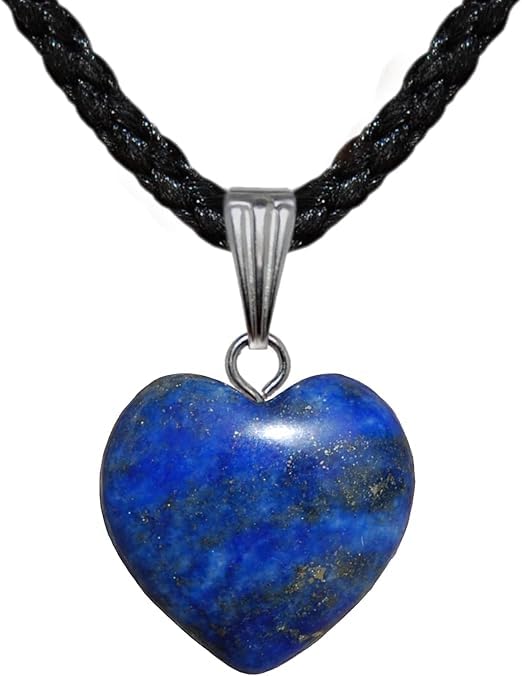Generic - احجار كريمة شريف على شكل قلب لازورد ازرق - حبل اسود - قلادة بدلاية من الاحجار الكريمة الكريستالية الطبيعية