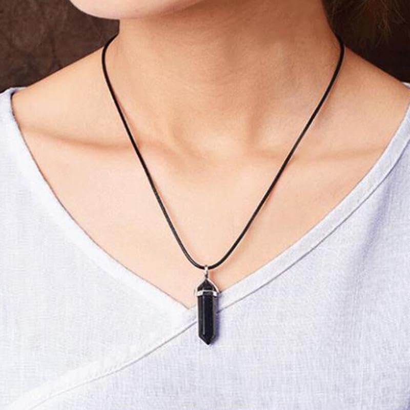 Generic - دلاية سلسلة شريف بأحجار كريمة ريكي طبيعية لحجر عقيق يماني أسود مدبب سداسي الشكل بنمط شاكرا للرجال والنساء والأولاد والبنات, متعدد