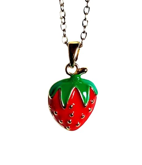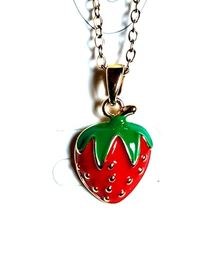 Generic - قلادة بتصميم فراولة حمراء اصلية من شريف جيمستون مع سلسلة ذهبية من الستانلس ستيل | مضادة للبهتان للبنات والنساء | مجوهرات عصرية للارتداء اليومي | افضل هدية