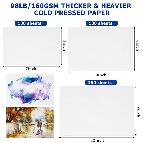 Sherr - حزمة ورق ألوان مائية من 300 ورقة ب3 أحجام 90 رطل - 160 جرام لكل متر مربع لون أبيض بالضغط على البارد تلوين مائي لرسم الأطفال والطلاب واسكتش رسم للفنانين المبتدئين 5 بوصة × 7 6 9 شير