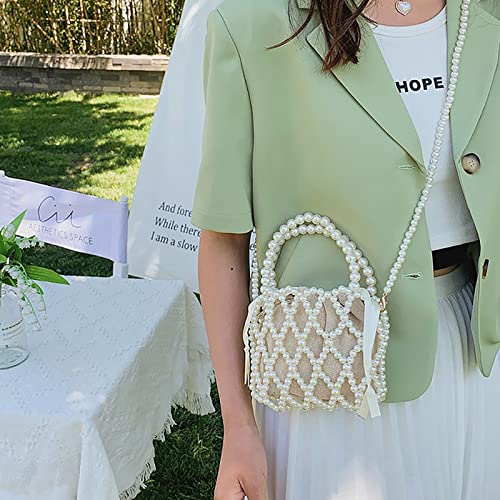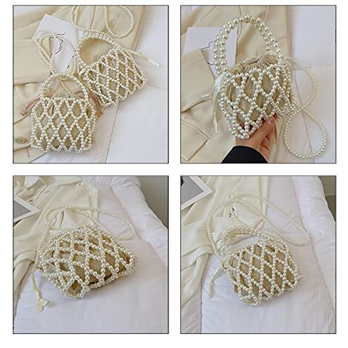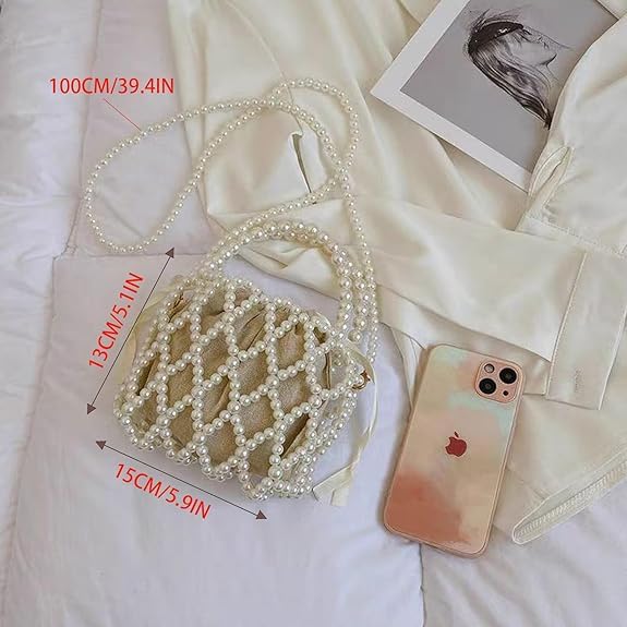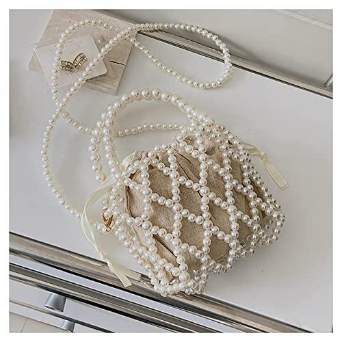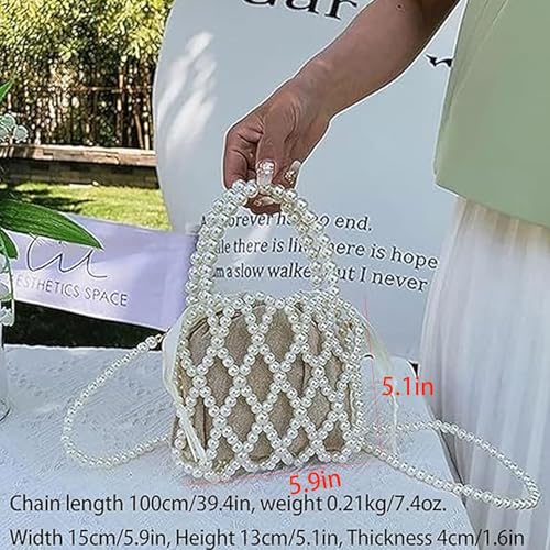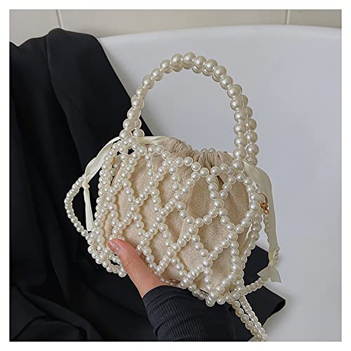 SHESRA - شنطة يد بسلسلة من اللؤلؤ الصناعي الفاخر شيسرا شنط صغيرة مصنوعة يدويا لحفلات الزفاف وحفلات والسفر 03 أبيض للنساء