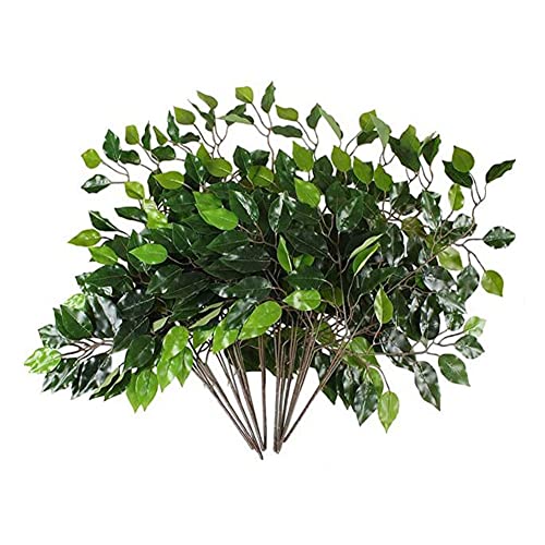 SHIHUALINE - فروع صناعية لنبات التين البنجاميني تحوي الأوراق الخضراء من شيهولين، إكليل نبات أخضر صناعي للمنزل والمكتب وديكور الشرفة والأماكن الداخلية والخارجية، 12 فرع