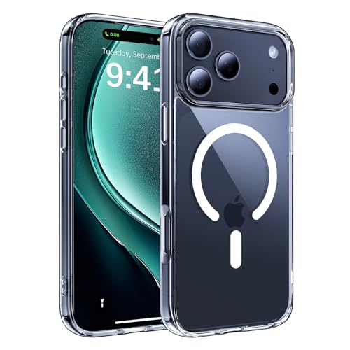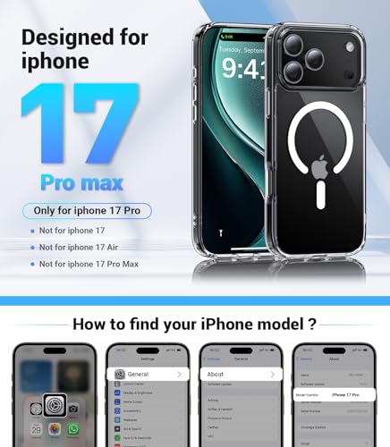 Shiiuou - جراب مغناطيسي مضاد للانزلاق ويوفر حماية من السقوط من الدرجة العسكرية وحماية للكاميرا بتصميم رفيع مطفي مضاد للصدمات لموبايل آيفون 17 برو من شيوو، لون شفاف كريستالي