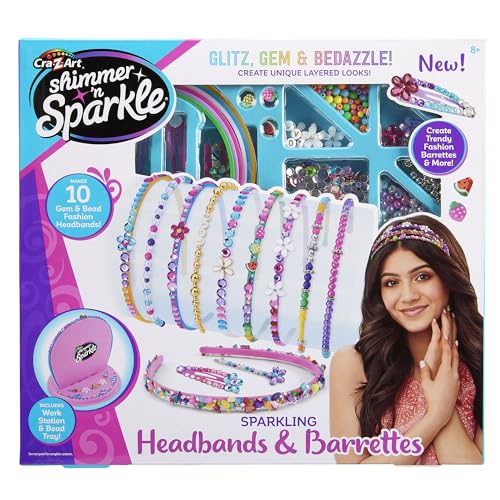 - أربطة للرأس والحلقات - تألقي بالأحجار الكريمة والإبهار مع أربطة الرأس والمشابك المذهلة شيمر اند سباركل! اصنعي أربطة رأس سلكية جميلة ومطرزة بالخرز وأربطة رأس بلاستيكية مملوءة بالأحجار الكريمة ومشابك جميلة ودبابيس شعر! تصنع 10 أربطة رأس عصرية من الأحجار الكريمة والخرز بإجمالي 4 مشابك.