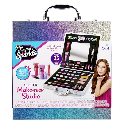 SHIMMER 'N SPARKLE - مجموعة تجميل ستوديو جليتر ميك اوفر من شيمر ان سباركل، مجموعة تجميل متكاملة للعيون والخدين والشفاه للأعمار من 8 سنوات فما فوق