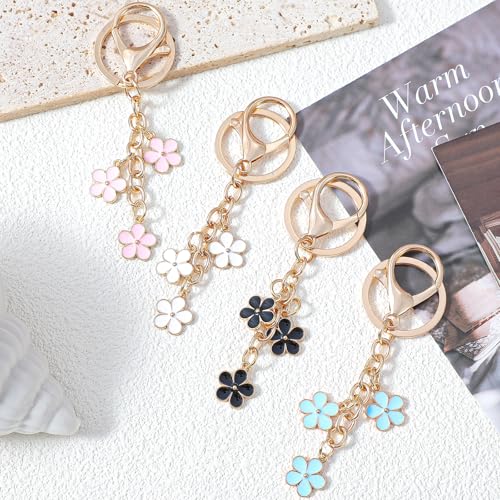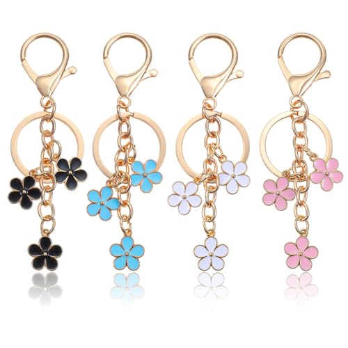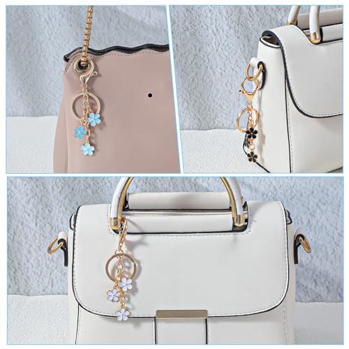 Shimmeroo - 4 قطع من تعليقات شنطة الزهور من شيميرو، سلسلة مفاتيح جميلة لطيفة لشنط النساء والمحفظة وشنط الظهر