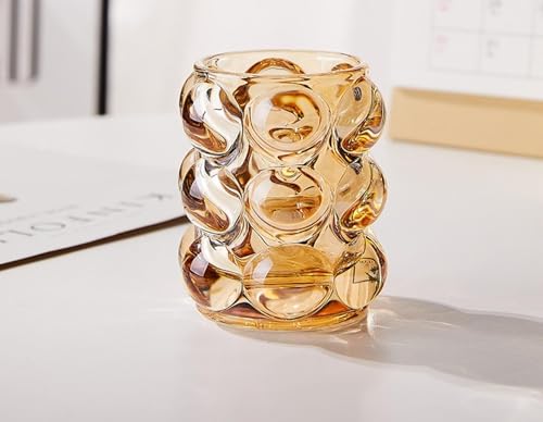 Generic - لمعان وأناقة.. شمعدان بلّابل الزجاجي! (الطول: 10سم، القطر: 8سم، الخامة: زجاج مستورد) - (متوفر باللون العسلي) - من جينيريك