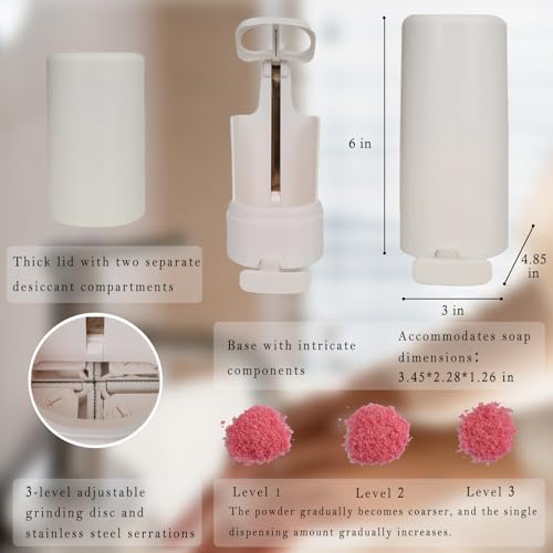- [حافظة صابون مصممة بشكل مبتكر] تتميز حافظة الصابون هذه بغطاء مقاوم للماء ومحكم الغلق ليمنع الرطوبة وأكسدة الصابون وتلف الصابون والحفاظ على العطر. الجزء السفلي محكم الغلق لمنع دخول الحشرات. يوجد داخل الغطاء قسمين مستقلين للمواد المجففة. وضع عبوات مجففة بالداخل يمكن أن يجفف الصابون الجديد الرطب قليلاً في غضون يوم تقريبًا ويحافظ على جفافه. جميع الأجزاء المعدنية مصنوعة من الفولاذ المقاوم للصدأ لمنع الصدأ وضمان المتانة.