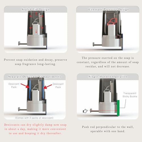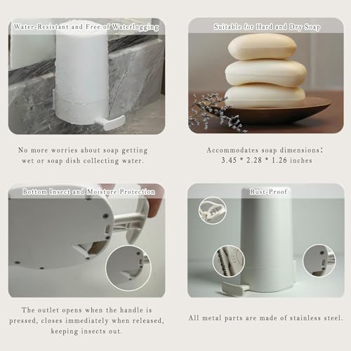 - [حامل صابون ثوري] يوفر حامل الصابون هذا تجربة استخدام جديدة للصابون، مما يمنع الأيدي المتسخة من ملامسة الصابون، ويمنع الصابون من البلل باستمرار، وتجنب تراكم الماء في حامل الصابون. يُصلح أوجه القصور السابقة لاستخدام الصابون، مما يضمن تجربة صابون مثالية.
