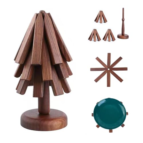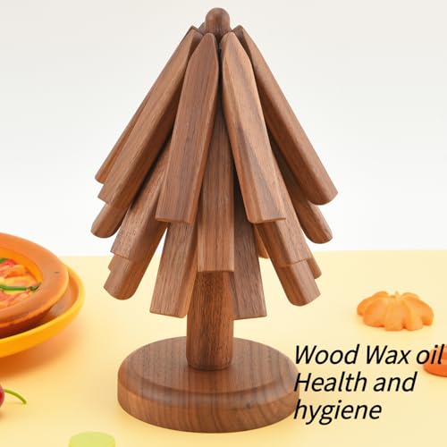 ShinianYa - حوامل خشبية لاباريق الشاي الساخنة والاطباق الساخنة والمقالي، مجموعة شجرة من خشب الجوز الاسود