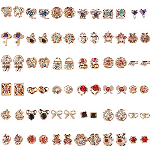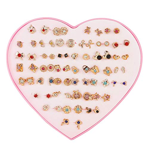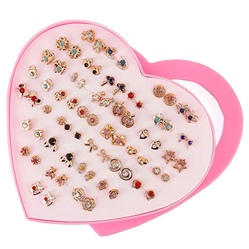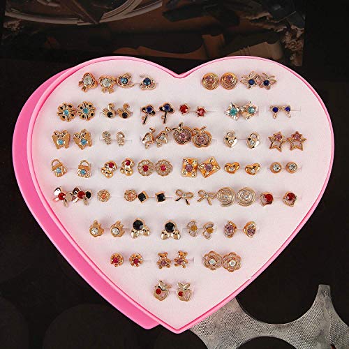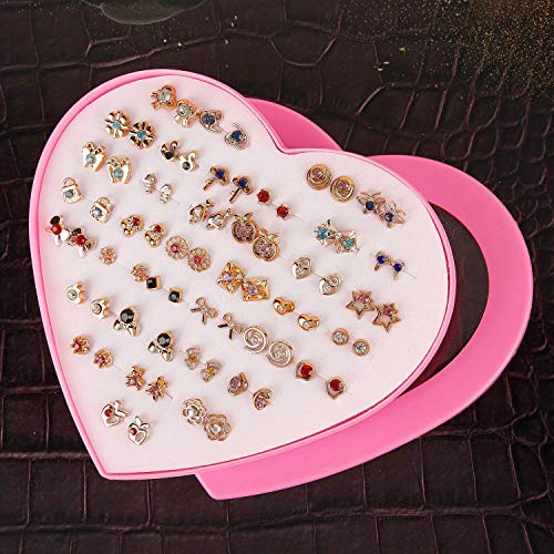 Shining Diva Fashion - شاينينج ديفا فاشون اقراط بريمة متعددة الالوان بقاعدة معدنية غير ثمينة من الكريستال بتصميم صندوق قلب للبنات (12016er، مجموعة كومبو من 36 زوج)