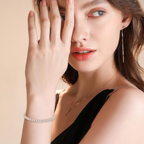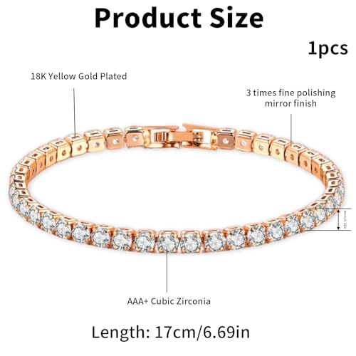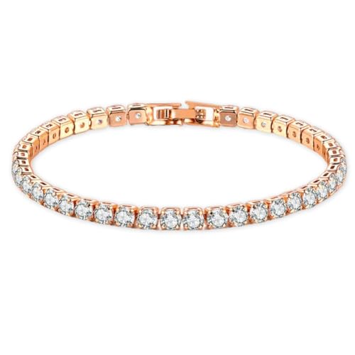 ShiningUU - سوار للنساء مقاس 4 ملم تنس مرصع بالكريستال اللامع اساور الصداقة الزركونيا الماسي للسيدات والفتيات هدايا للام والأخوات ذهبي .