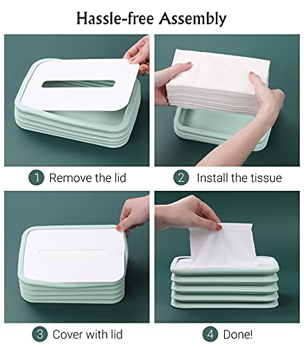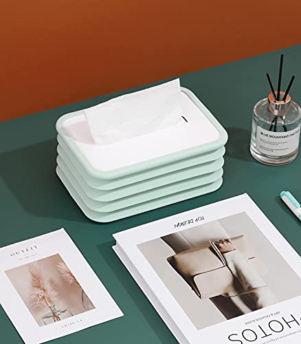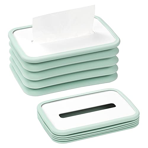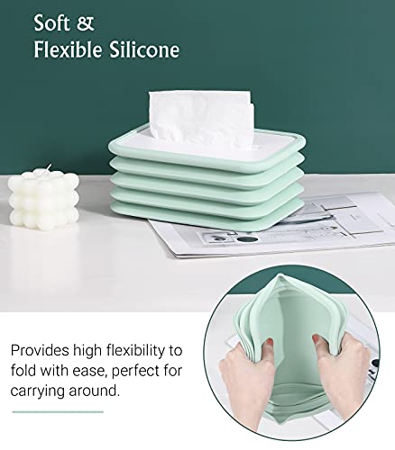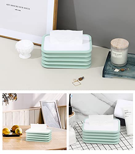 Shinowa - علبة تخزين مناديل من السيليكون، حامل غطاء علبة مناديل مستطيل قابل للطي، حامل علبة توزيع مناديل الوجه للمطبخ وغرفة المعيشة والمرحاض وغرفة المكتب، ازرق، من شينووا