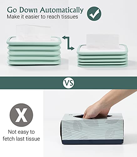 - 🗃 [تصميم فريد]: عندما يكون ارتفاع المناديل منخفضًا جدًا، سينخفض غطاء المناديل الورقية تلقائيًا إلى الارتفاع المناسب، مما يسهل إخراج المناديل الورقية ومنعها من السقوط في العلبة.