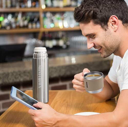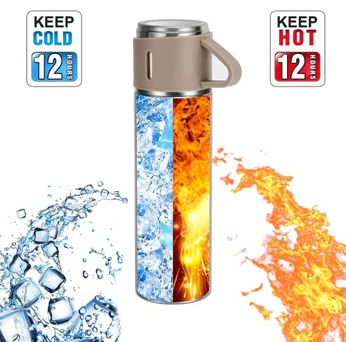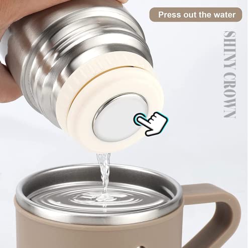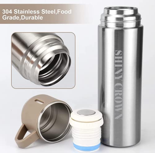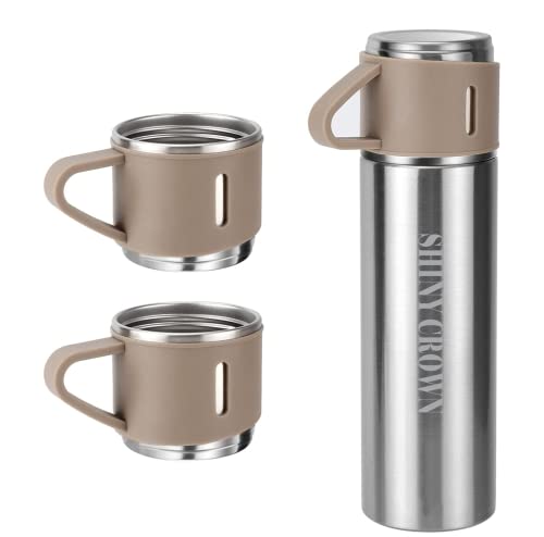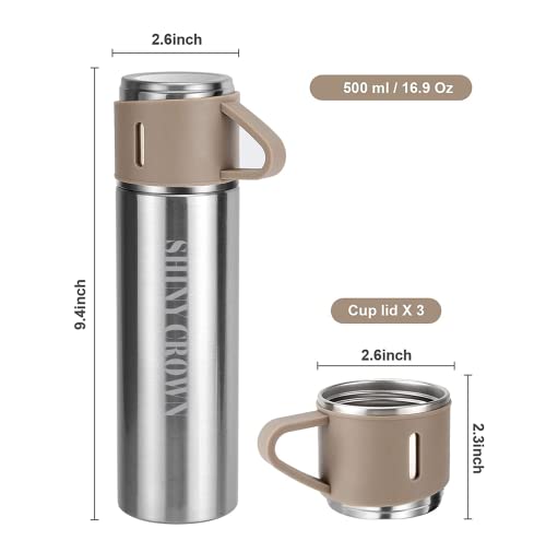 Shiny Crown - قارورة مفرغة من الهواء الستانلس ستيل مع كوب شايني كراون، زجاجة مياه معزولة بجدار مزدوج سعة 500 مل، ثيرموس مانع للتسرب للمشروبات الساخنة او الباردة، اكواب قهوة للسفر للنساء والرجال (فضي-بني)