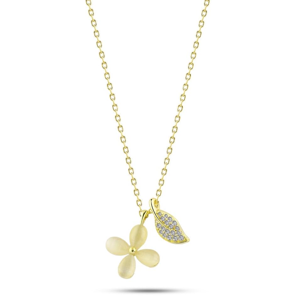 Generic - عقد من الفضة الاسترلينية عيار 925 مرصع بحجر زركون لامع بتصميم فرع وزهرة