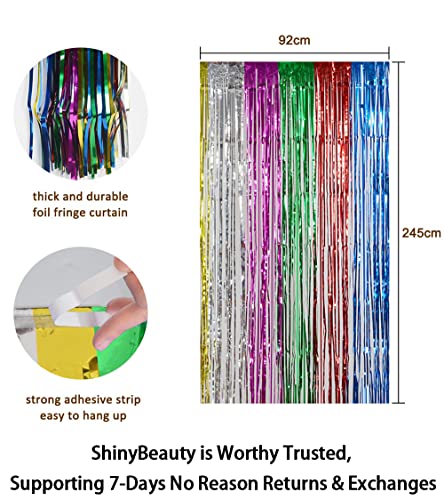ShinyBeauty - شايني بيوتي مجموعة من 2 ستارة خلفية بشراشيب الرقائق المعدنية قوس قزح معدنية كشك الصور باب متعددة الالوان لتزيين الحفلات