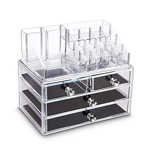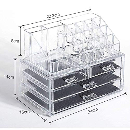 shivam enterprise - صندوق تخزين منظم مكياج اكريليك من شيفام انتربرايز™ مجوهرات ومستحضرات التجميل مكون 4 ادراج حامل علب