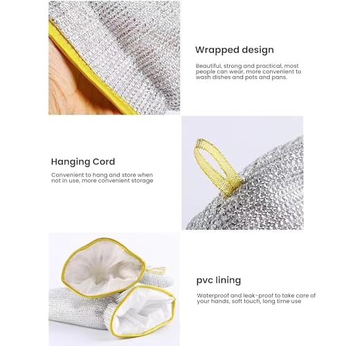 Shivansha Enterprise - جوانتيات سلكية لغسيل الأطباق من شيفانشا انتربرايز، قفازات تنظيف المطبخ، أدوات التنظيف المنزلية، قفازات مطبخ قابلة لإعادة الاستخدام لغسل الأطباق ومسح الأواني (زوج واحد من القفازات السلكية)