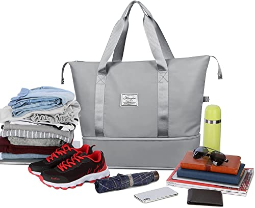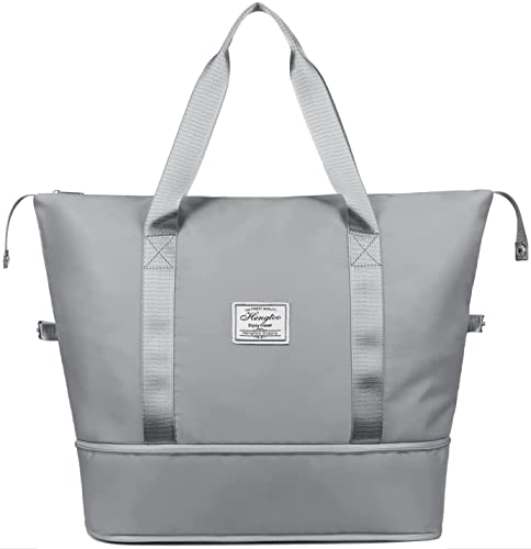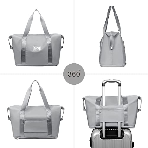 SHIVMYRA - شنطة سفر دفل قابلة للطي، شنطة سفر قابلة للطي ذات سعة كبيرة، شنطة سفر مقاومة للماء بوزن خفيف لحمل اغراض السفر (مقاس 40 × 23 × 45 سم), رمادي