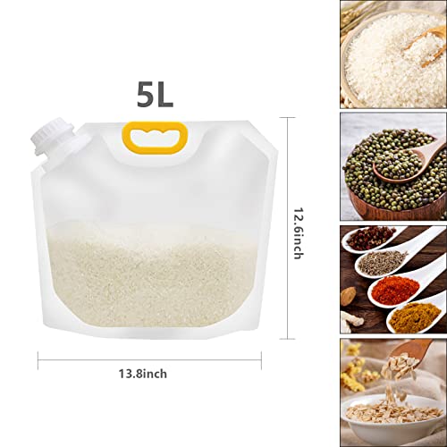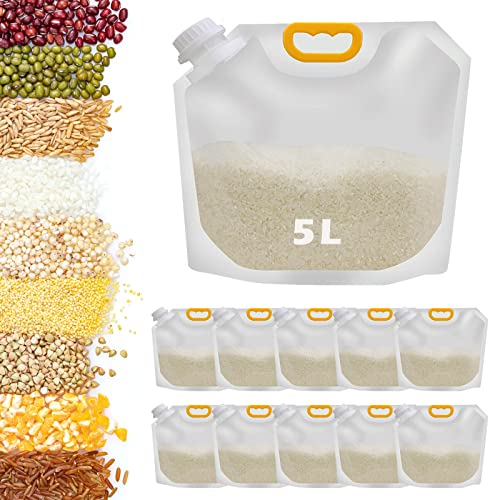 Shker - اكياس حبوب بسعة كبيرة لتخزين الطعام محكمة الاغلاق مضادة للرطوبة وللرائحة شفافة وقابلة لاعادة الاغلاق مكونة من 10 قطع مع أغطية (بسعة 5 لتر) من شيكر