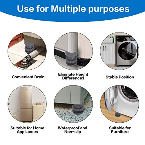 ECTY - دعامة غسالة بخاصية الغاء الصدمات والضوضاء، تدعم الغسالة المضادة للاهتزاز وقابلة للتعديل، وسادات مضادة للاهتزاز، قواعد غسالة ومجفف، مجموعة تكديس عالمية للغسالة والمجفف (4 قطع)
