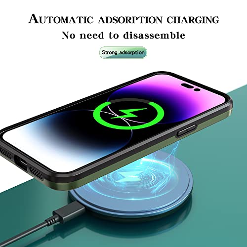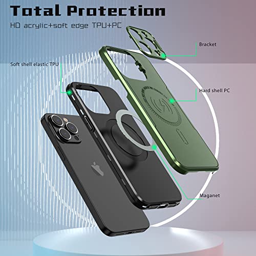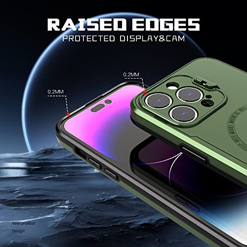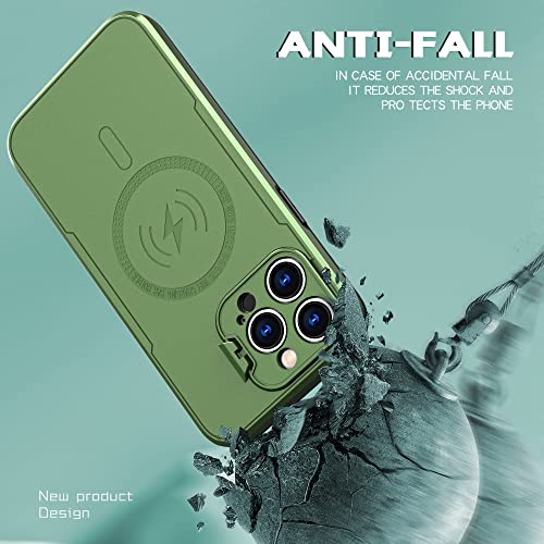 Generic - جراب حماية خلفي مغناطيسي مضاد للصدمات، جراب حامل للشحن اللاسلكي، حماية للكاميرا، مصنوع من خليط هايبرد من البولي يوريثين الحراري مع البولي كربونات، متوافق مع موبايل ايفون 14 برو ماكس (لون أخضر)