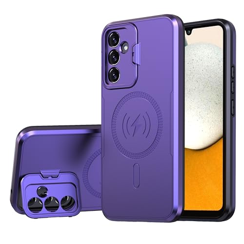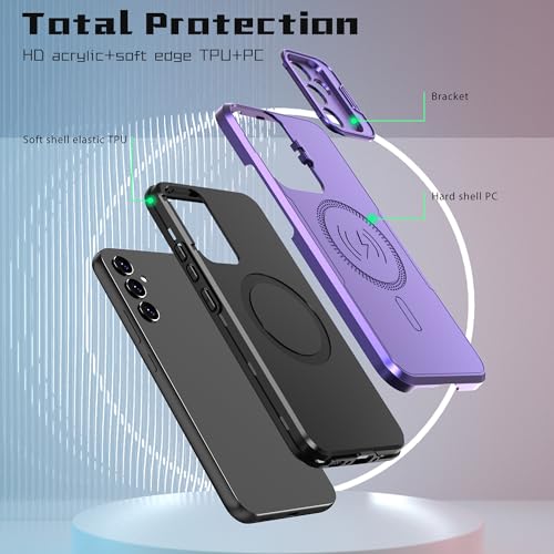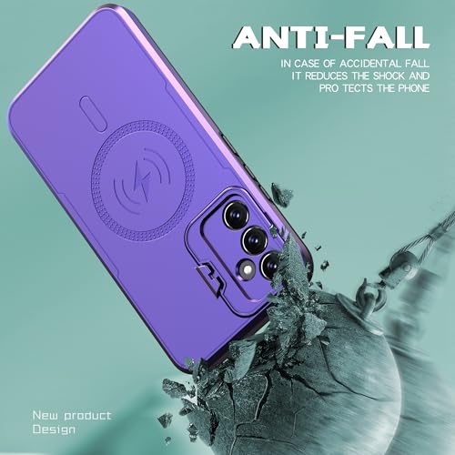 Generic - جراب موبايل خلفي مقاوم للصدمات، جراب شحن لاسلكي مغناطيسي بحلقة معدنية مصنوع من البولي كربونات الهجين والبولي يوريثين المقاوم للحرارة متوافق مع موبايل سامسونج جالاكسي A34 (أرجواني)