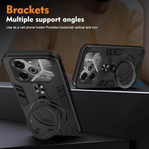 Generic - حافظة واقية مضادة للصدمات لتيكنو سبارك 30C بطبقة مزدوجة مع مسند حلقي دوار 360 درجة، ظهر صلب، حامل مغناطيسي للسيارة متوافق مع تكنو سبارك 30C (اسود)
