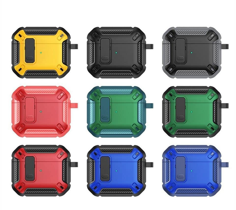 Generic - جراب حماية صلب للهيكل بالكامل مع سلسلة مفاتيح، جراب حماية مضاد للصدمات بطراز عسكري بلون ازرق لسماعات ايربودز برو / ايربود برو 2 2022، صدفة