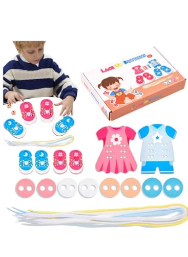 Generic - مجموعة تعلم زر الاحذية للاطفال، لعبة تعليمية للاطفال، نمط فستان زهري وازرق، لعمر 3 سنوات فما فوق