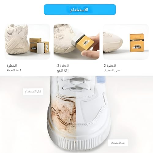 • ممحاة إسفنجية سحرية لإزالة الأوساخ - تقنية فريدة من طبقتين، أدوات تنظيف دقيقة قوية وتركيبة تنظيف خاصة لإزالة البقع العنيدة والخدوش والأوساخ على أي نعل.