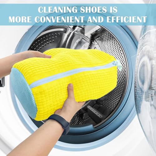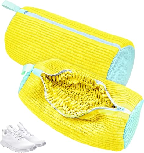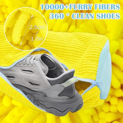 Generic - شنطة تنظيف الأحذية، شنطة غسيل الأحذية للغسالة، ألياف منفوشة قابلة للدوران 360 درجة، قابلة لإعادة الاستخدام لجميع أنواع وأحجام الأحذية (اصفر)، قطعة واحدة، أصفر