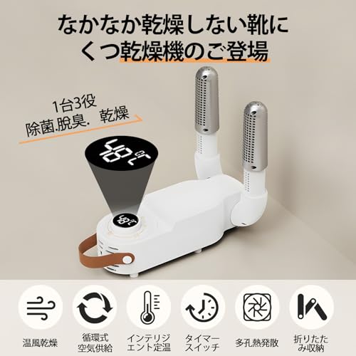 - (تصميم تجفيف عميق وقابل للطي) يصل جهاز تجفيف الأحذية إلى عمق الحذاء ويجف تمامًا، مما يمنع تراكم الرطوبة. مع وظيفة المؤقت التي يمكنها ضبط وقت التجفيف وتصميم مدمج قابل للطي. يمكن تخزينها بسهولة في صندوق الأحذية